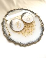 The CircleGleam Trio Set brings together elegance and utility — featuring a handcrafted round resin tray with 2 matching coasters, all finished in a high-gloss shine and rimmed with Wedbie’s signature rhinestones. Perfect for tea-time, vanity styling, or luxury gifting.