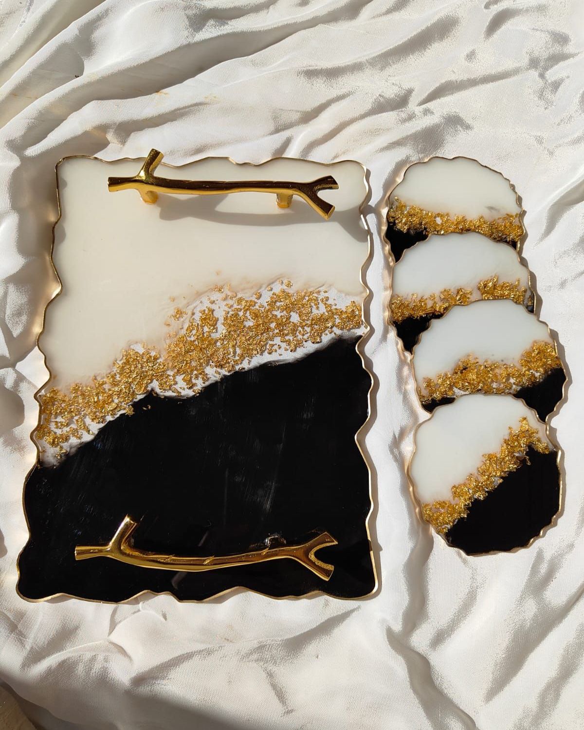 • ✅ Complete Luxury Set – Includes 1 premium resin tray + 4 matching coasters