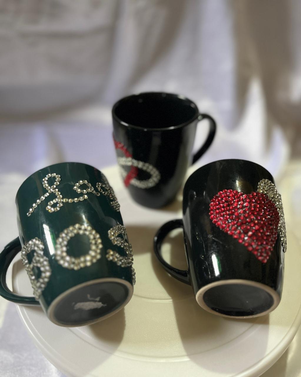 “Turn your daily sip into a sparkling luxury with our personalised rhinestone mugs.”