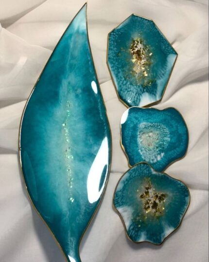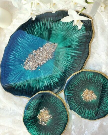 ✅ 5-Piece Matching Set – 1 rectangular tray + 4 designer coasters