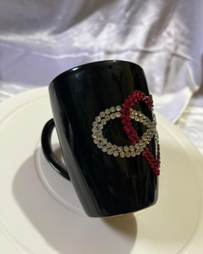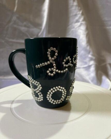 “Turn your daily sip into a sparkling luxury with our personalised rhinestone mugs.”