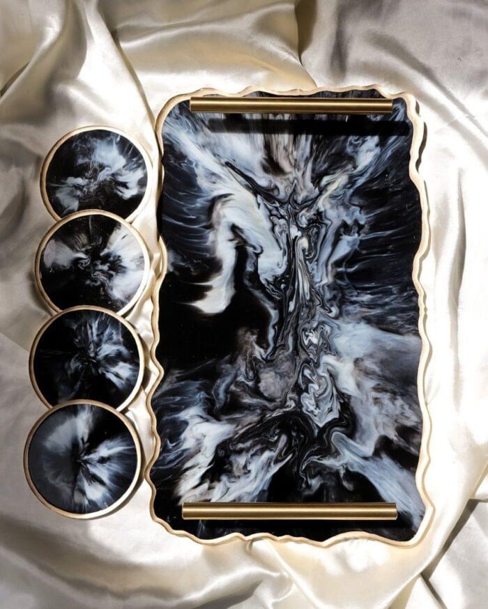 ✅ Complete Set – Includes 1 rectangular/oval tray and 4 coordinating resin coasters