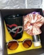 “Luxury rhinestone hamper with sunglasses, candle, mug & scrunchies—perfect for weddings, gifting & everyday sparkle.”