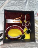 An exclusive wedding hamper featuring a rhinestone ring bearer pillow, chic headband, stylish bows, and sparkling sunglasses—crafted for elegance and timeless charm.”