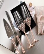 🥂 Includes 2 premium wine flutes, 1 knife, and 1 cake server